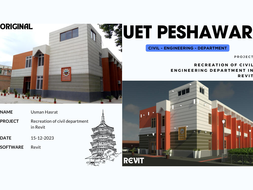 I created a detailed Revit model of the Civil Engineering Department at UET Peshawar. The project involved modeling both structural and architectural elements, focusing on accuracy and design details.